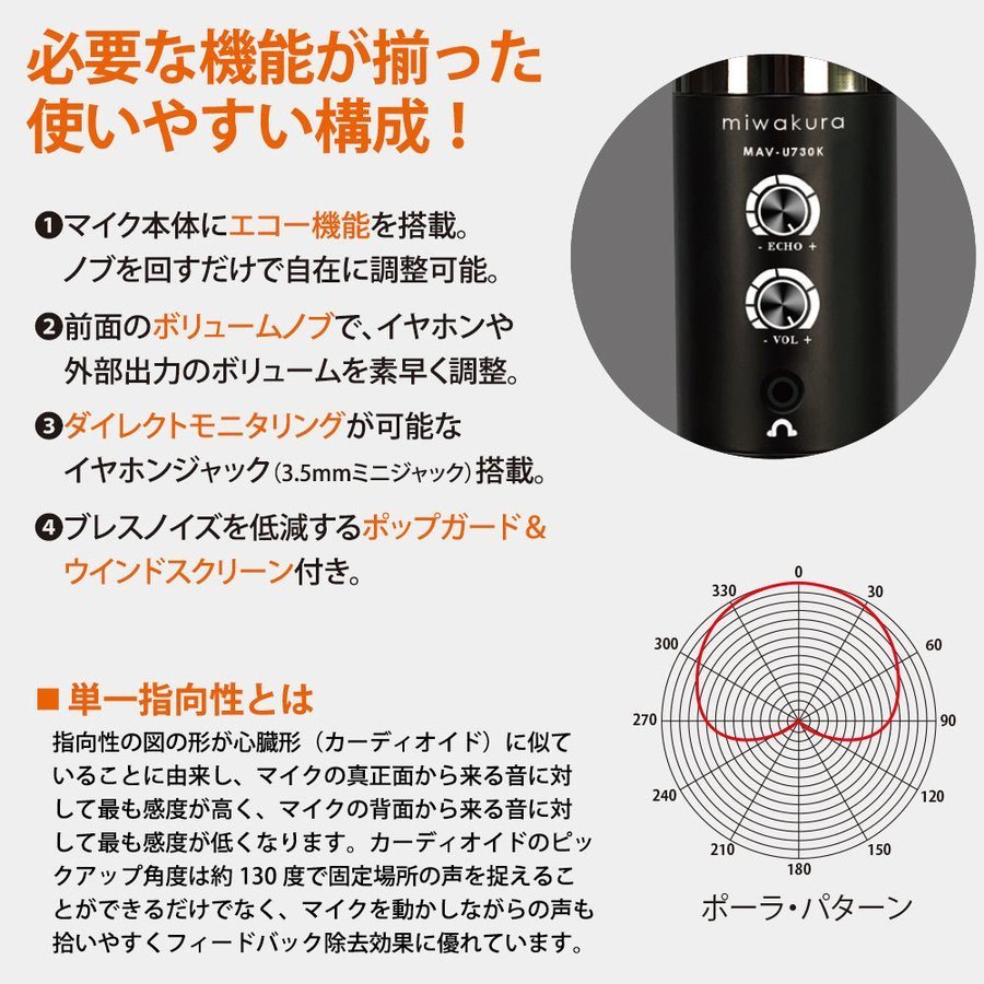¥³¥ó¥Ç¥ó¥µ¡¼¥Þ¥¤¥¯ ¥»¥Ã¥È USBÀܳ ÈþÏ¢ ñ°ì»Ø¸þÀ ¥¨¥³¡¼µ¡Ç½ MAV-U730K